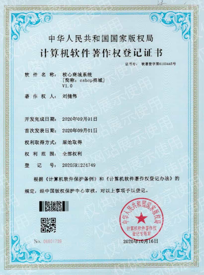 - 软件受国家计算机软件著作权保护(登记号:2020SR1224749)。